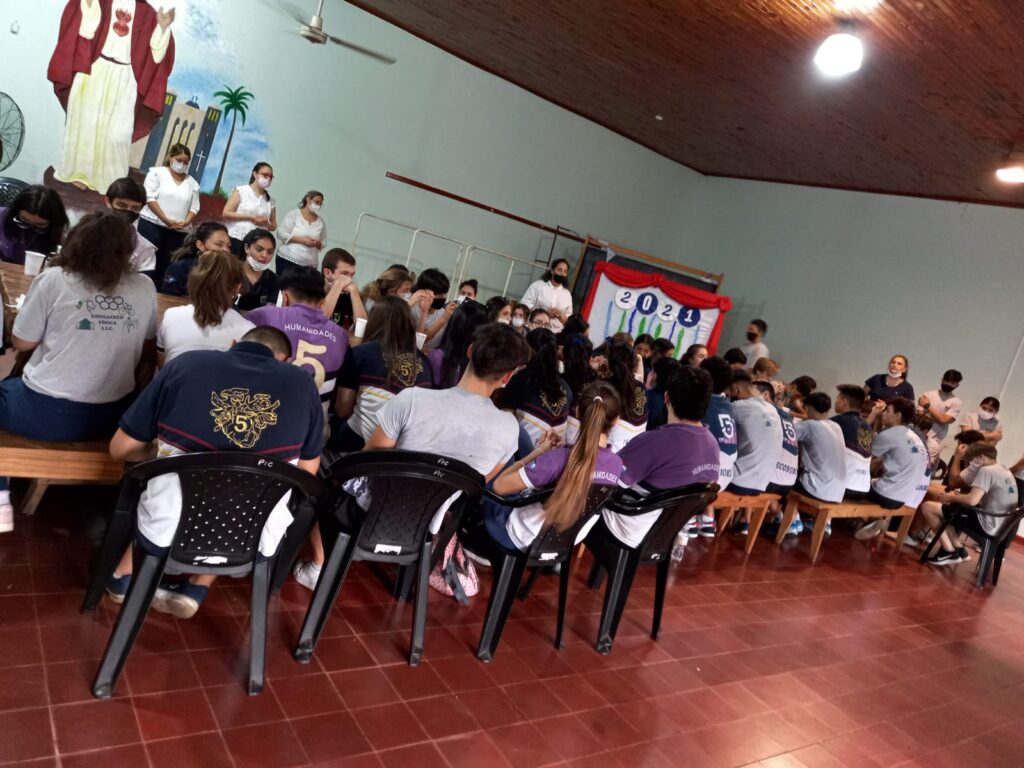 Hoy con un gran gesto de amor, compañerismos y mucha alegría se ha llevado a cabo en la Institución un agasajo a los 5° años de las tres Modalidades dando gracias a Dios en la celebración de la Santa Misa por estos cinco años de su paso por nuestra Institución, continuaron con actividades deportivas y recreativas y finalizaron con un compartir en el almuerzo y una exquisita torta. Vamos despidiendo de apoco a nuestros flamantes jóvenes.