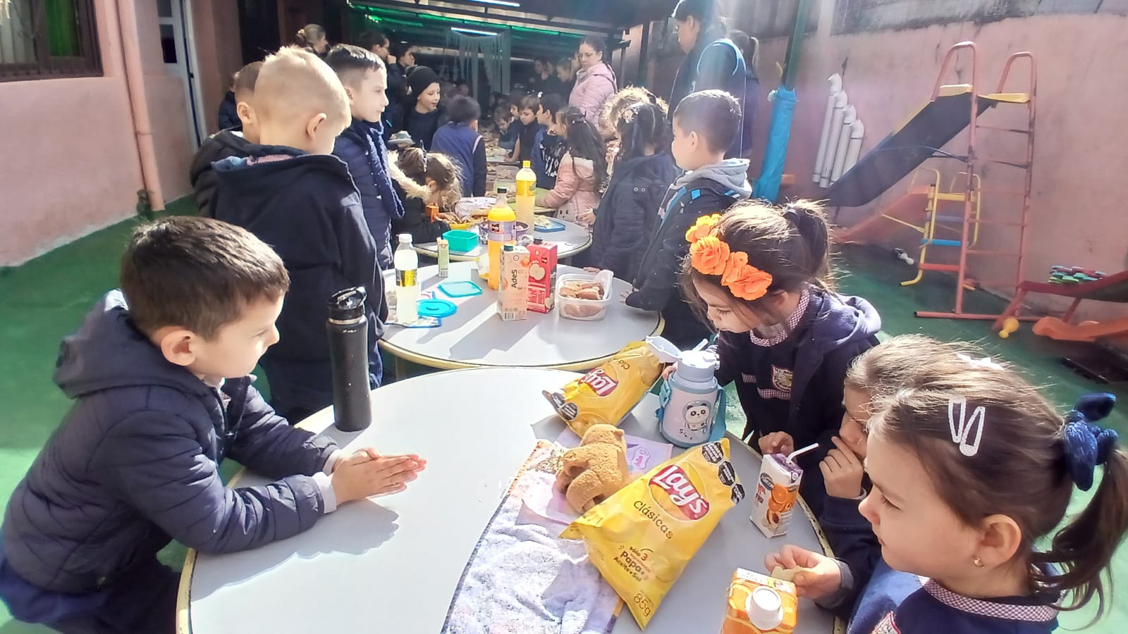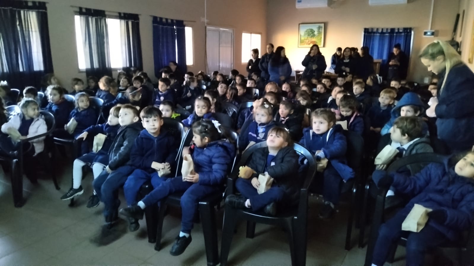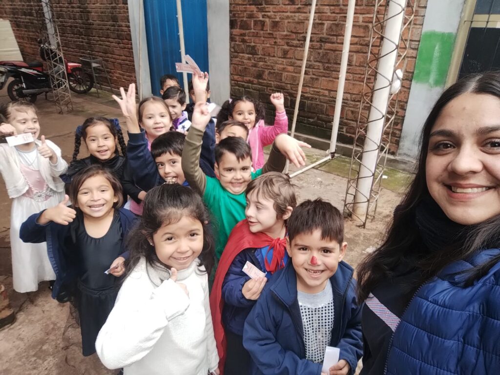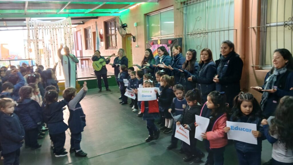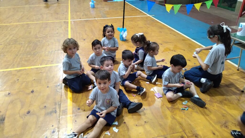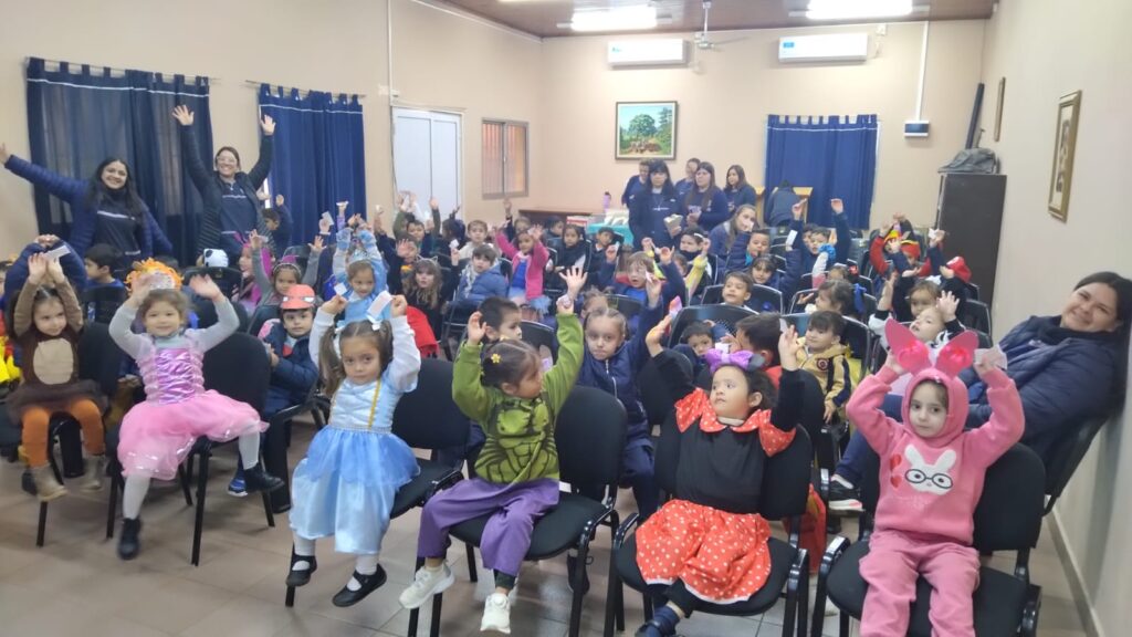 Disfrutamos de una hermosa jornada de juegos en el Polideportivo, un colorido desfile de disfraces, una divertida función de cine con pochoclos y, como cierre especial, la bendición del querido Padre Ángel para los niños del jardín.