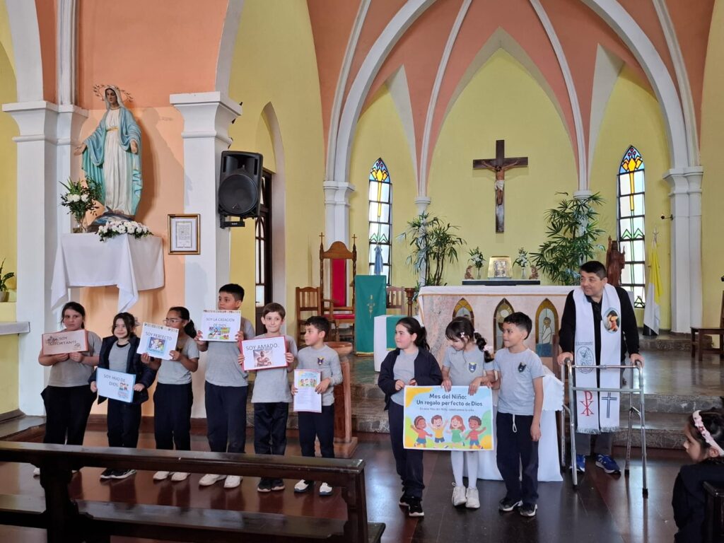 Nivel Inicial Misa por el Mes del Niño 14 de agosto de 2025 IIC «Con María, Peregrinos de esperanza»El día de hoy, haciendo alusión al Mes del Niño… celebramos la Misa con los estudiantes de segundo y tercer grados.